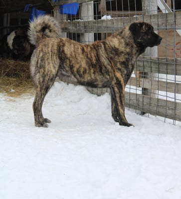 Cirak is a beautiful Anatolia Shephard, brindle pattern. She came to us all the way from the state of Washington from a fabulous breeder. She fits right in at our farm. She and Bean patrol all night assuring the livestock are safe.